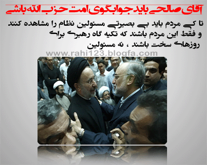 - آیا این نیست که همین شخص خاتمی (ملعون) دل رهبر ( امام خامنه ای ) عزیزمان را خون کرده بود ؟!